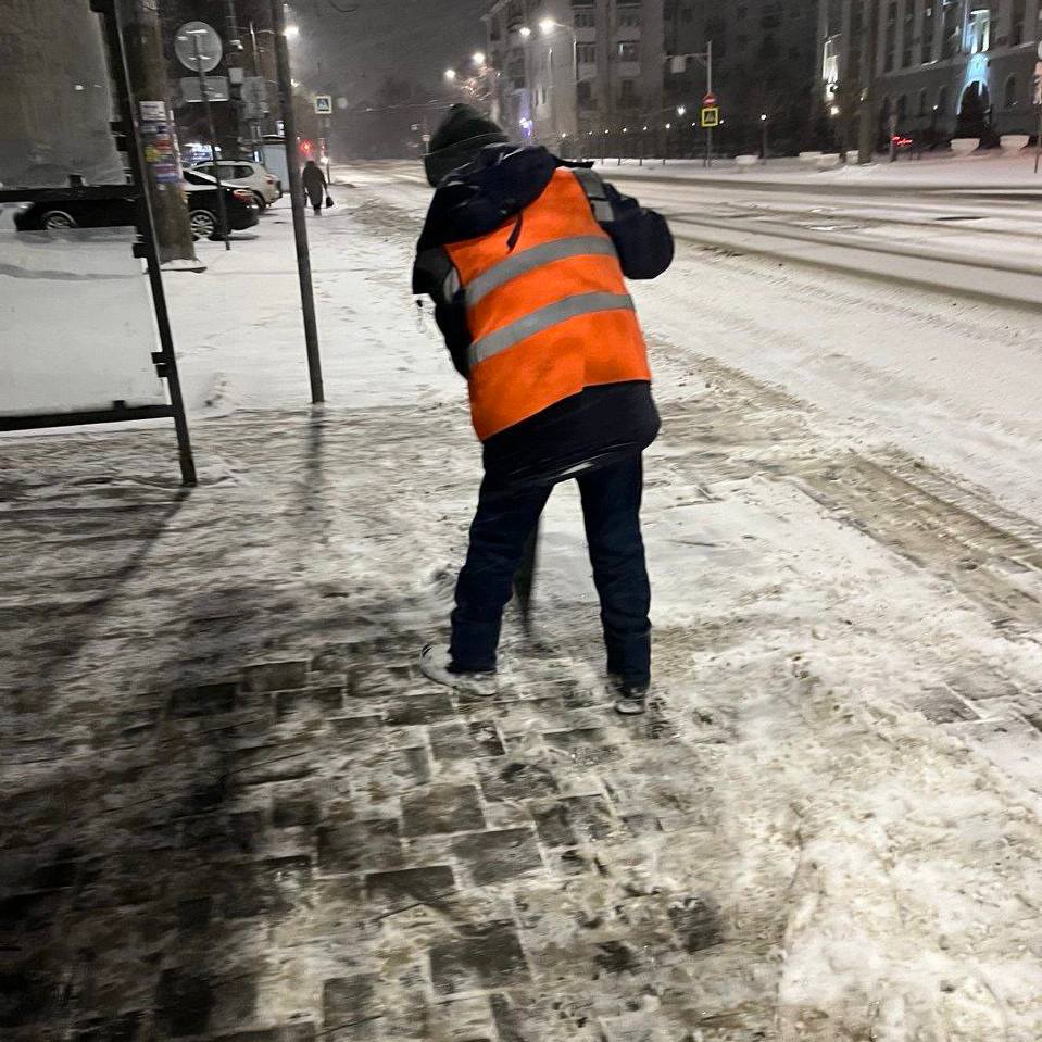 Специалисты оперативно убирают снег, в том числе и с тротуаров, чтобы обеспечить комфортное и безопасное передвижение граждан по городу.