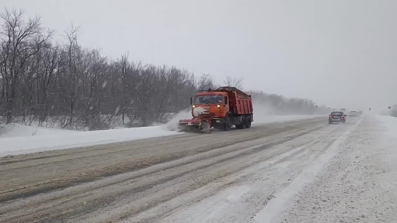 Для борьбы со снегом и метелью на региональных дорогах работают автоколонны