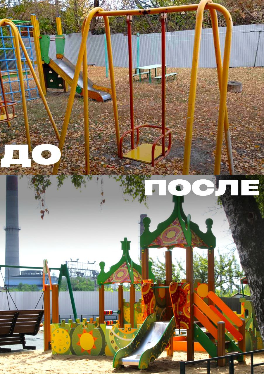 Во дворе ул. Верхнепионерская, 24А обустроили детскую площадку, установили новое детское игровое оборудование, экодиваны, экоурны, пешеходные дорожки, столики с навесом, ограждение, отремонтировали подходы к подъездам.