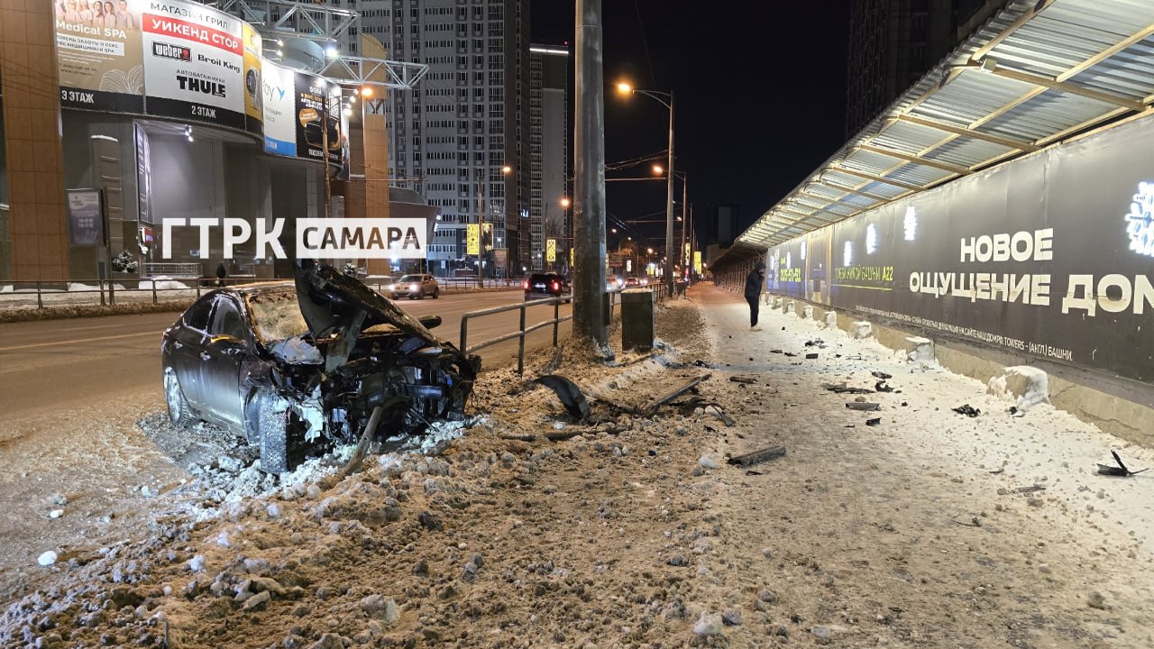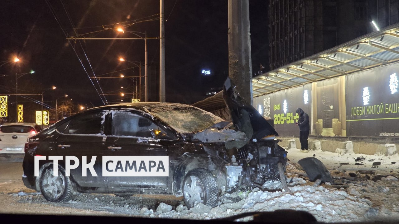 Около ТЦ «Вертикаль» автомобиль въехал в столб
