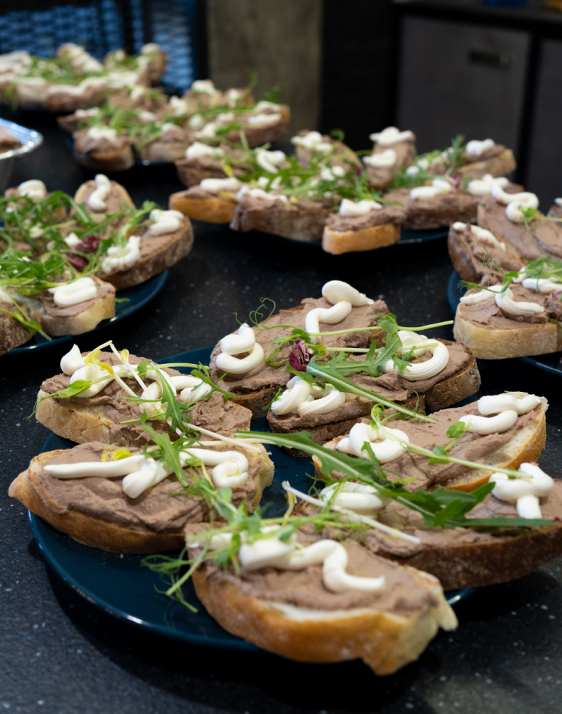 Измельчённую массу охлаждают и сбивают блендером до однородной консистенции. Хочется более нежную текстуру? Массу можно дополнительно протереть через сито. Для брускетт нарезают чиабатту толстыми слайсами и запекают в духовке с оливковым маслом и прованскими травами.