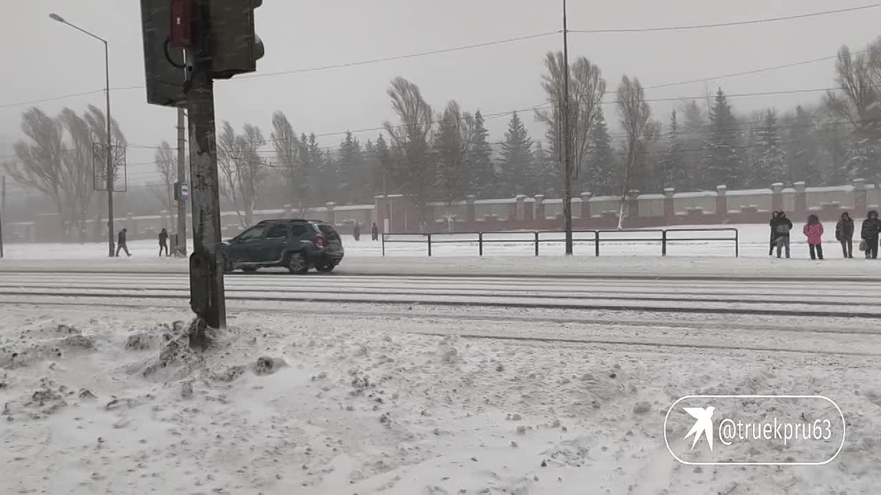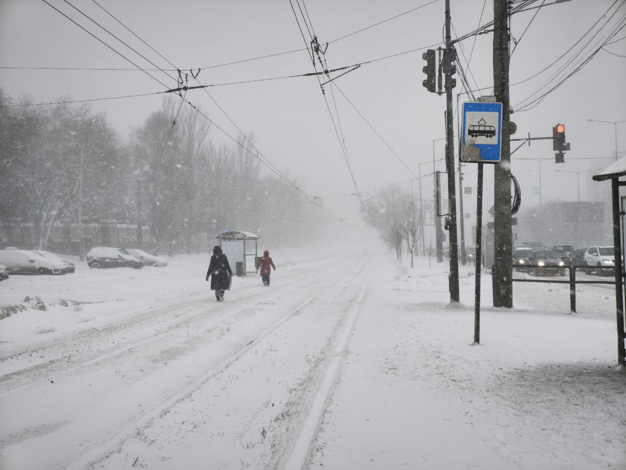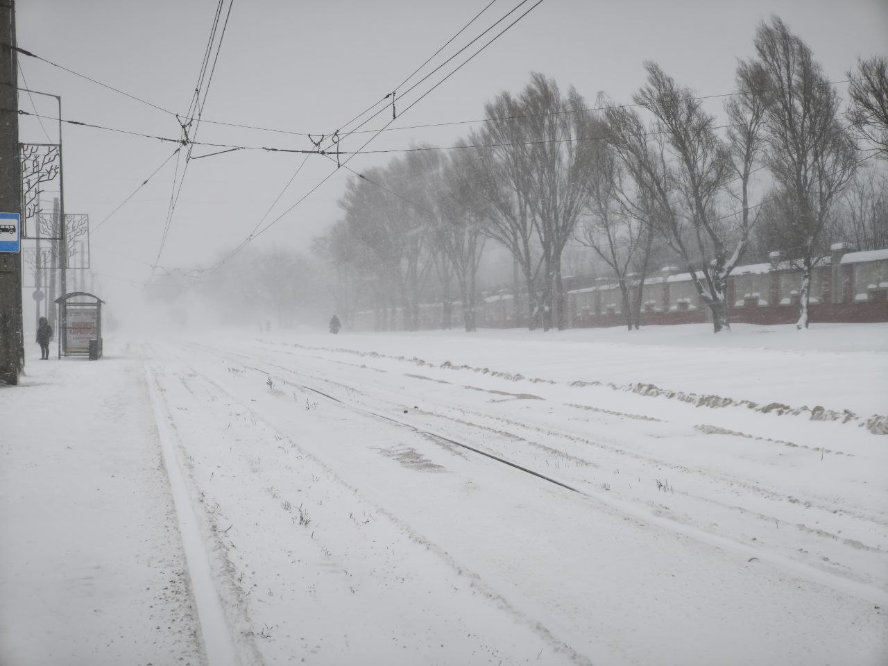Внимание всем рискнувшим выйти сегодня на улицу! При переходе трамвайных путей будьте особо осторожны. Даже с включёнными фарами в такой сильной метели приближающийся трамвай почти не видно.