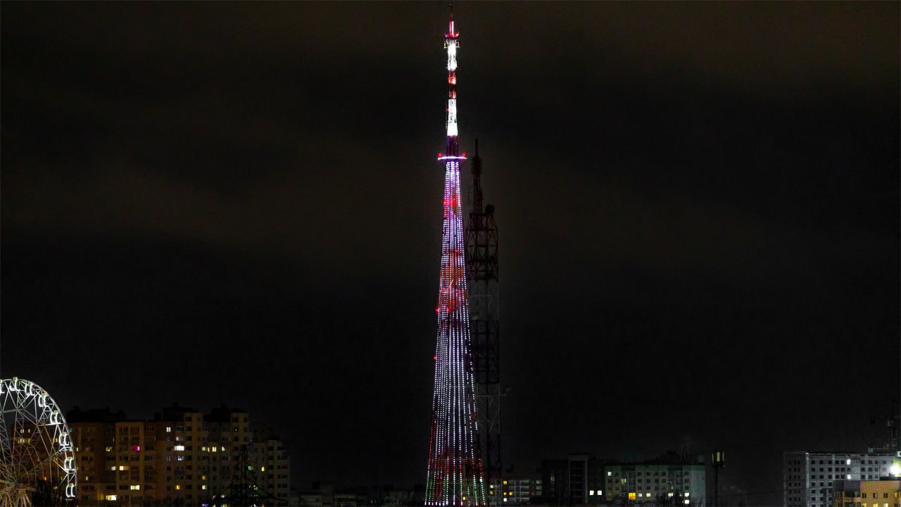Праздничный понедельник подходит к концу, а свет телевизионной башни пробирается сквозь снежную вьюгу.