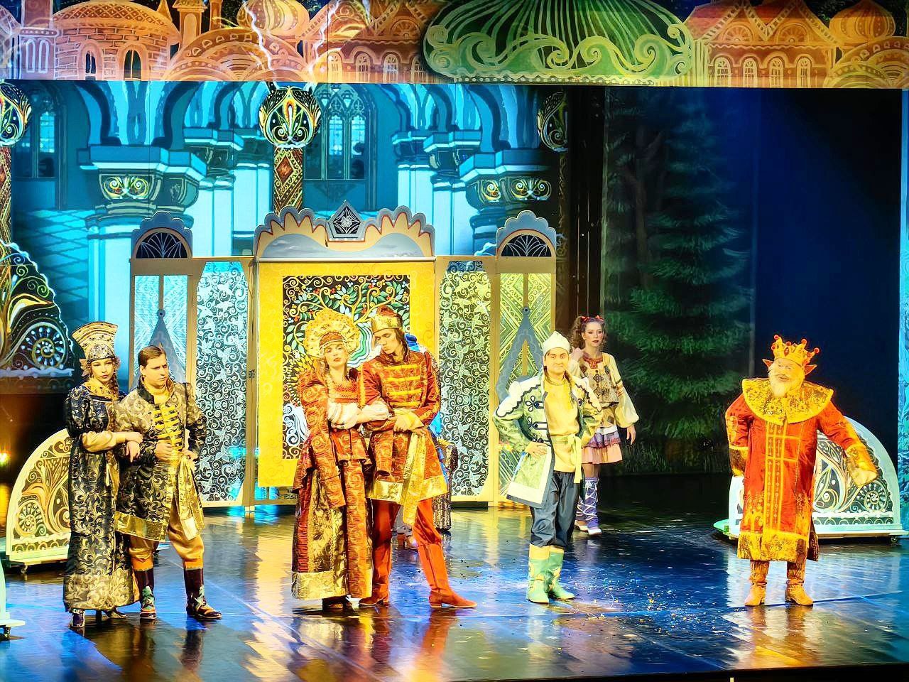 После интермедии с участием Деда Мороза и Снегурочки ребят и родителей пригласили в зрительный зал, где их ждала встреча с героями сказки «Царевна лягушка». В зале был аншлаг. Вера в чудо и всепобеждающее добро поддерживалась частыми аплодисментами и детскими репликами.