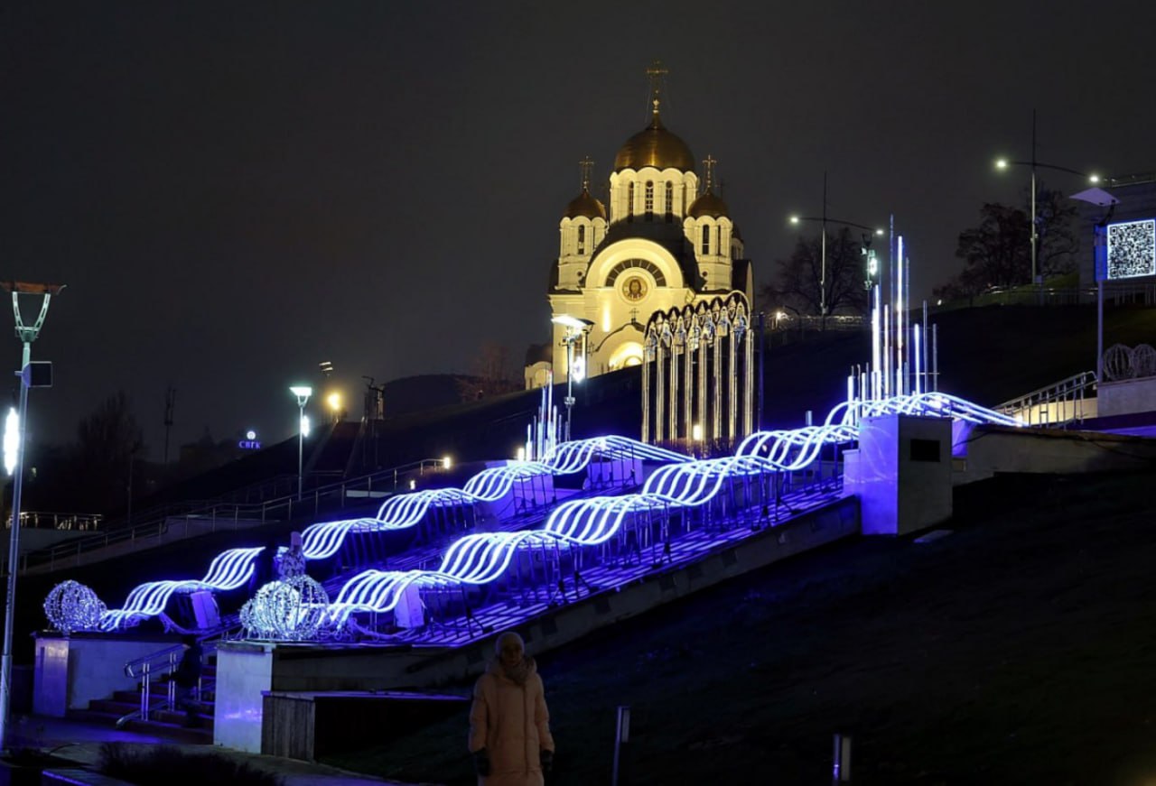 Спуск к ней от площади Славы украсила композиция «Северное сияние», там же размещен каскадный фонтан и светодиодные светящиеся шары. А на самой набережной открыт работает самый атмосферный каток - для катания на коньках залили аллеи у бассейна ЦСКА. Работает каток круглосуточно - со вторника по воскресенье.