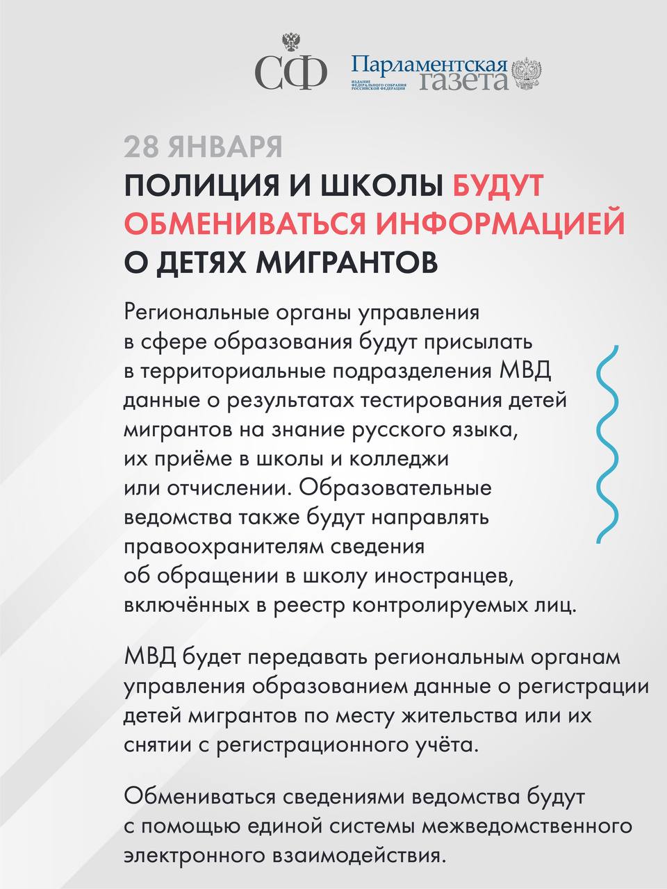 Полиция и школы будут обмениваться информацией о детях мигрантов, принудительные работы станут отдельным видом наказания, а компенсацию за нарушение авторских прав рассчитают по-новому.
