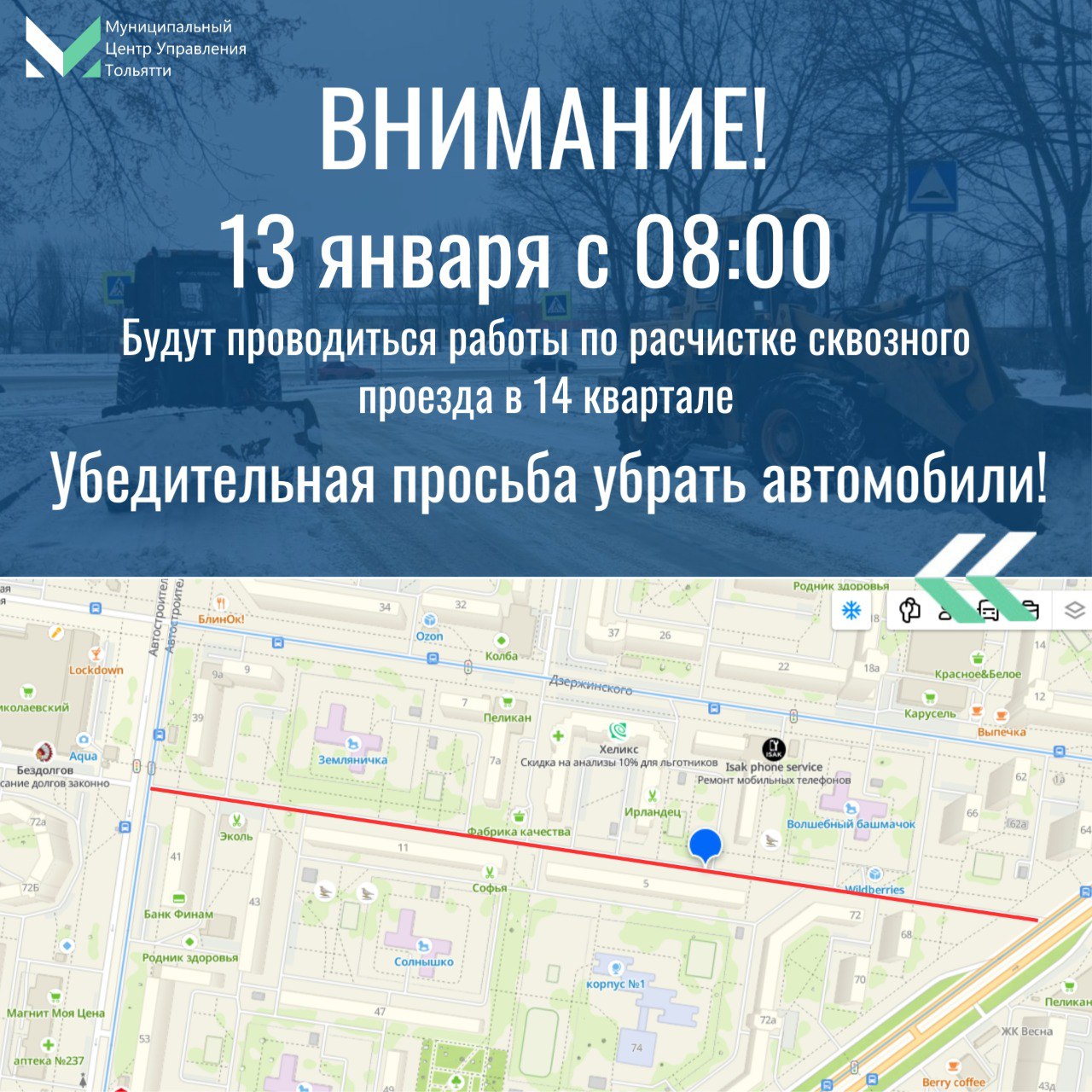 13 января с 8:00 и с 9:00 запланированы работы по расчистке от снега: