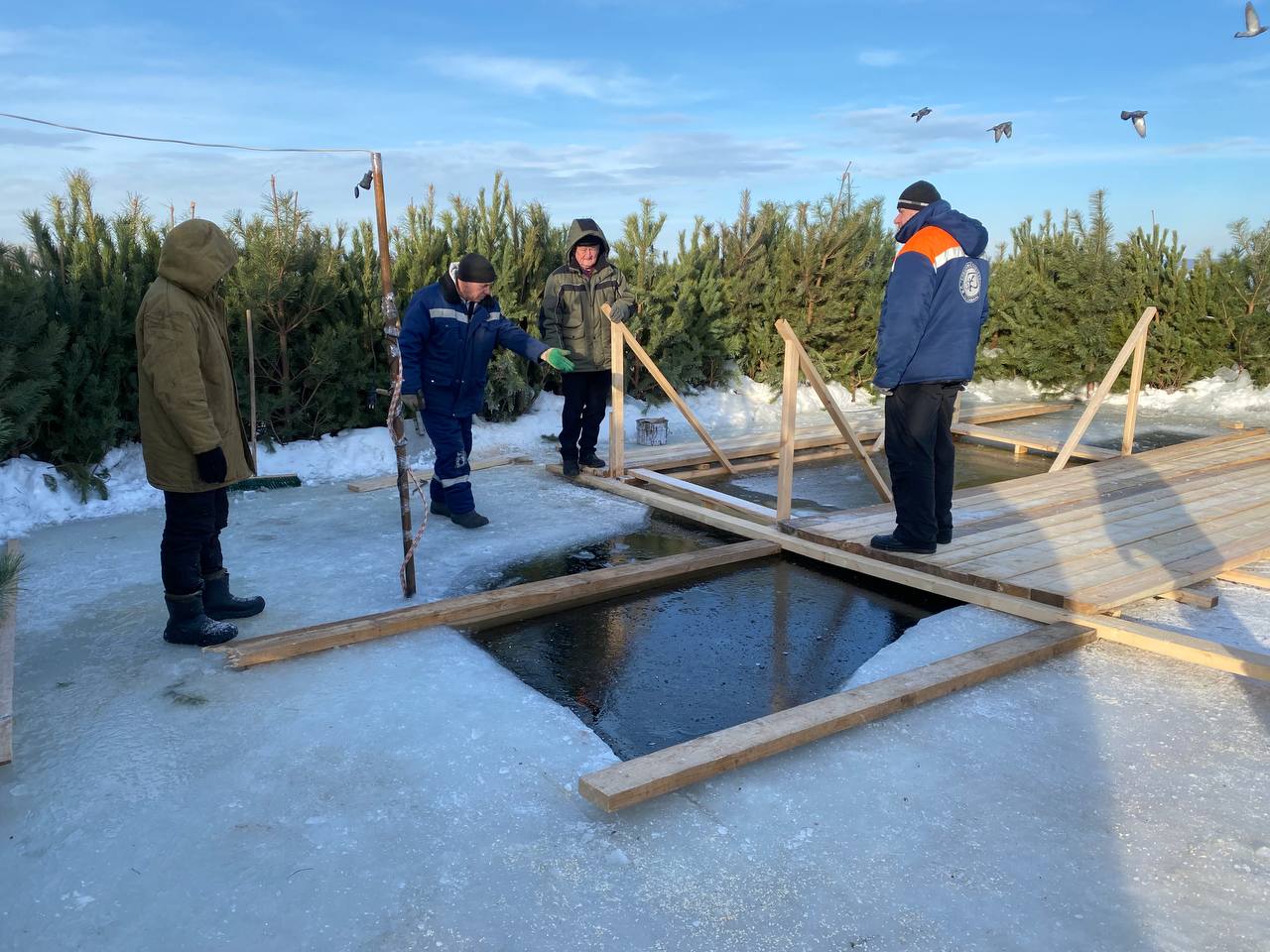 Прорубь здесь была и раньше, ею пользовались местные «моржи». Сейчас рабочие установили лестницу, монтируют настил вокруг купели и обустраивают дорожку для безопасного спуска к воде.ГТРК...