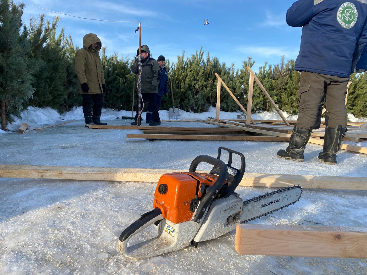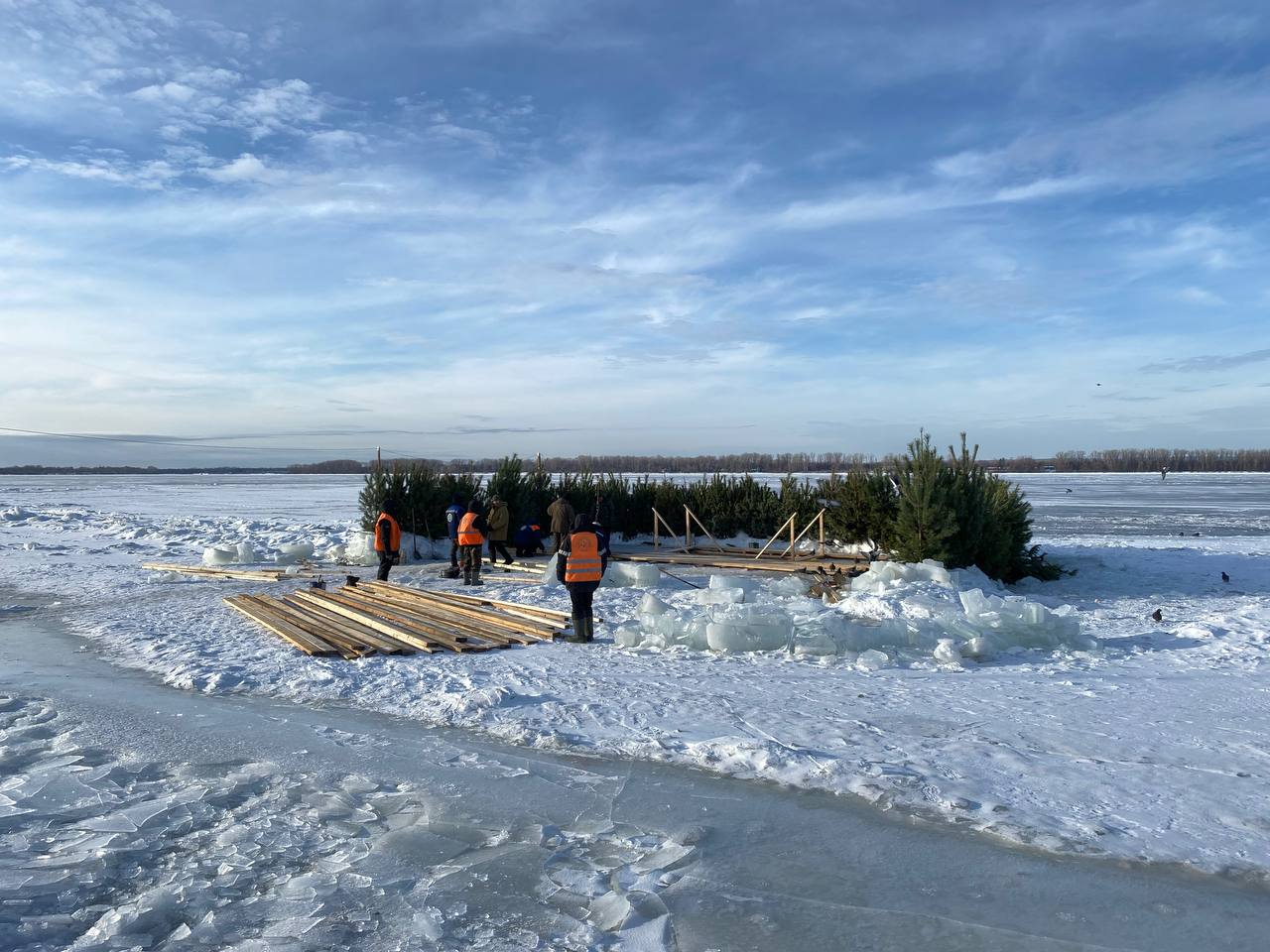Прорубь здесь была и раньше, ею пользовались местные «моржи». Сейчас рабочие установили лестницу, монтируют настил вокруг купели и обустраивают дорожку для безопасного спуска к воде.