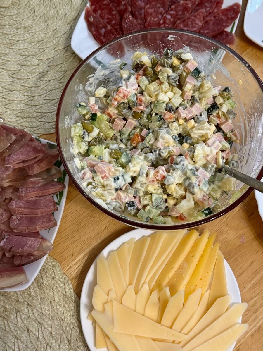 Готовый салат окажется незаменимым атрибутом новогоднего стола — его легко подать, просто добавив нужное количество в салатник и заправив майонезом. Оливье — это не просто еда, это целая традиция, которая объединяет поколения за одним столом.