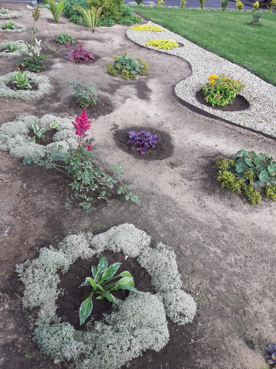 Этому природному элементу удалось прекрасно вписаться в цветковую композицию, сочетаясь с зеленью хост, малиновыми астильбами и пурпурными геихерами. Его выносливый цвет добавил ярких акцентов, которые впечатляют с приходом летнего тепла и радуют глаз.