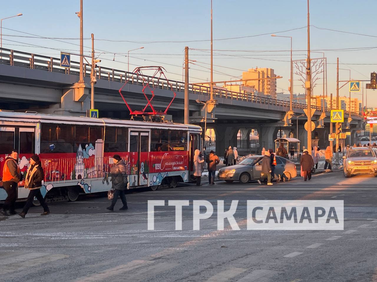 В Самаре столкнулись легковой автомобиль марки «Лада Приора» и трамвай маршрута №20.