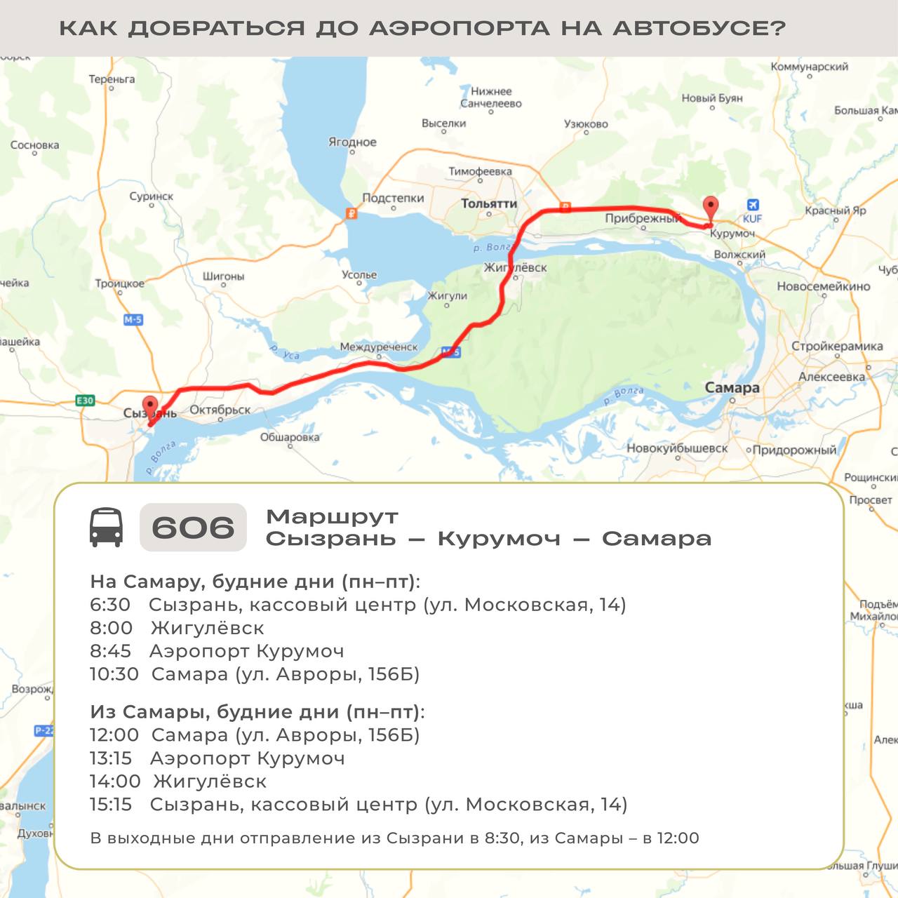 Удобный вариант — автобус № 606 «Сызрань — Самара» с заездом в аэропорт Курумоч.
