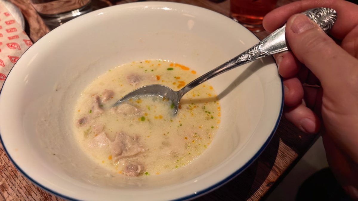 Для богатства вкуса в чихиртму добавляется заблаговременно обжаренный лук и мелко нарезанное мясо. В итоге получается суп с уникальной консистенцией и насыщенным вкусом, который напомнит легкую окрошку на кефире: он кисленький, плотный и очень сытный.