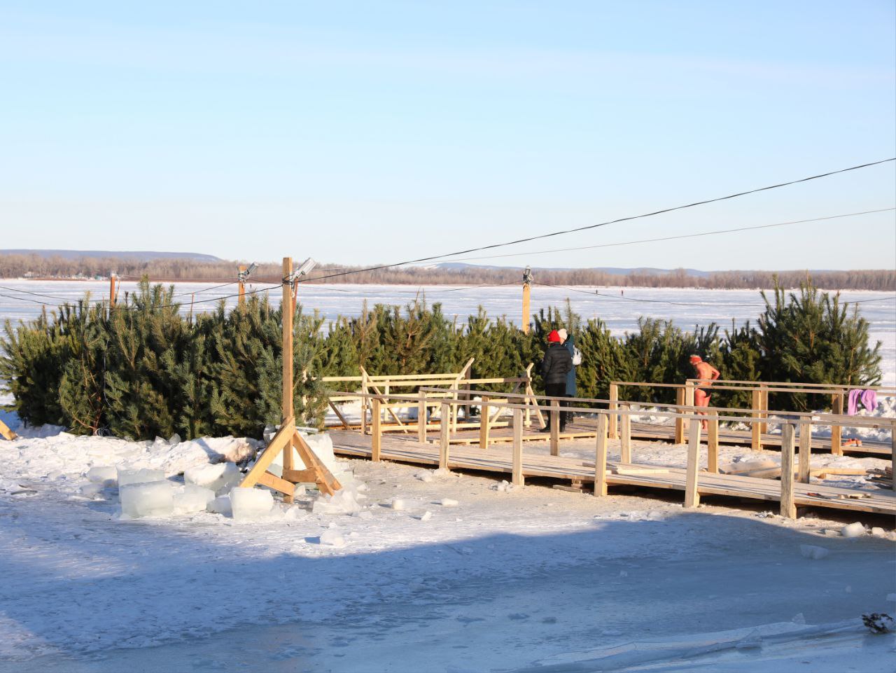 Ко всему прочему, здесь установили палатки для обогрева, раздевалки, предусмотрена возможность выпить чаю с угощением. Сама купель соответствует всем нормам безопасности.