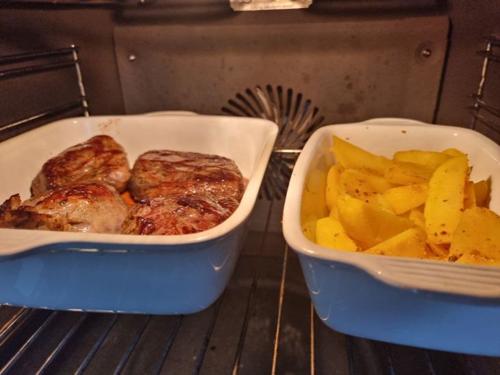 Лайфхак: после первого переворота слегка придавите дольки толкушкой. Это увеличит площадь контакта с противнем и усилит хруст.