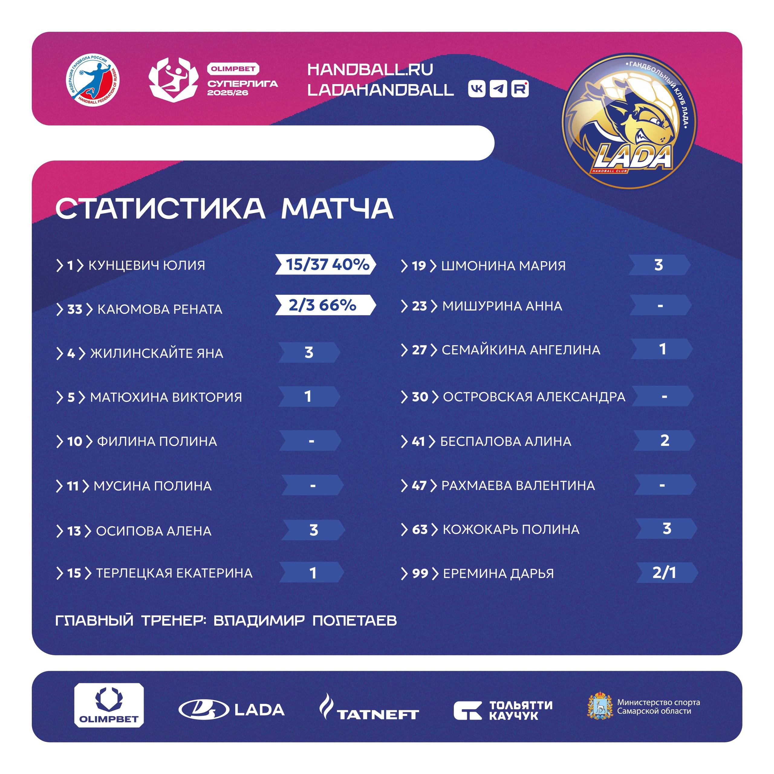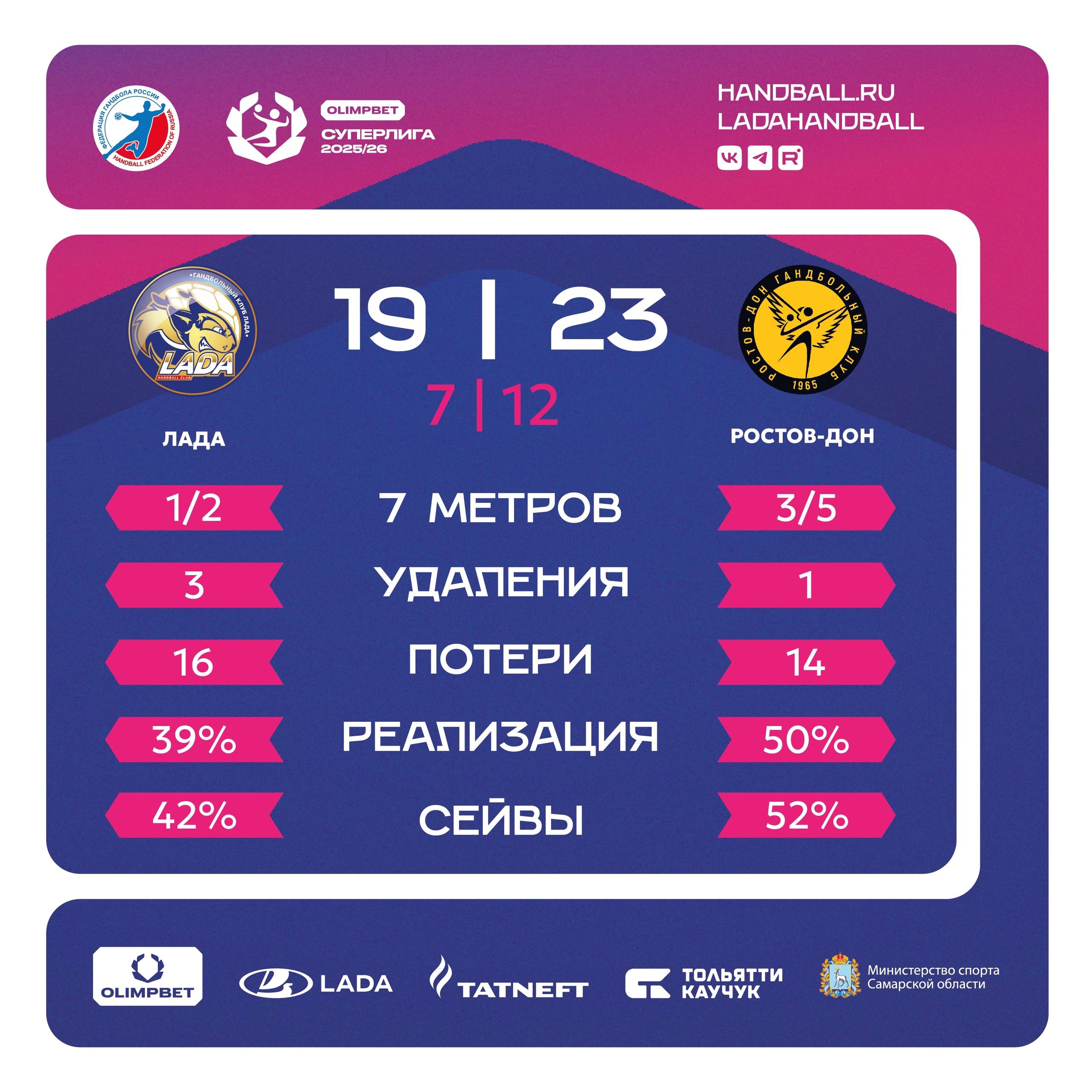 Это была жаркая встреча, но, к сожалению, кончилась проигрышем. Сегодня гандбольная «Лада» сыграла против «Ростов-Дон». Делимся статистикой матча «ЛАДА» (Тольятти) - «Ростов-Дон» (Ростов-на-Дону).