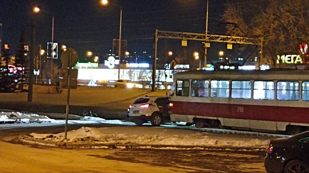 В Самаре на улице Ново-Садовая трамвай въехал в иномарку вечером 18 января