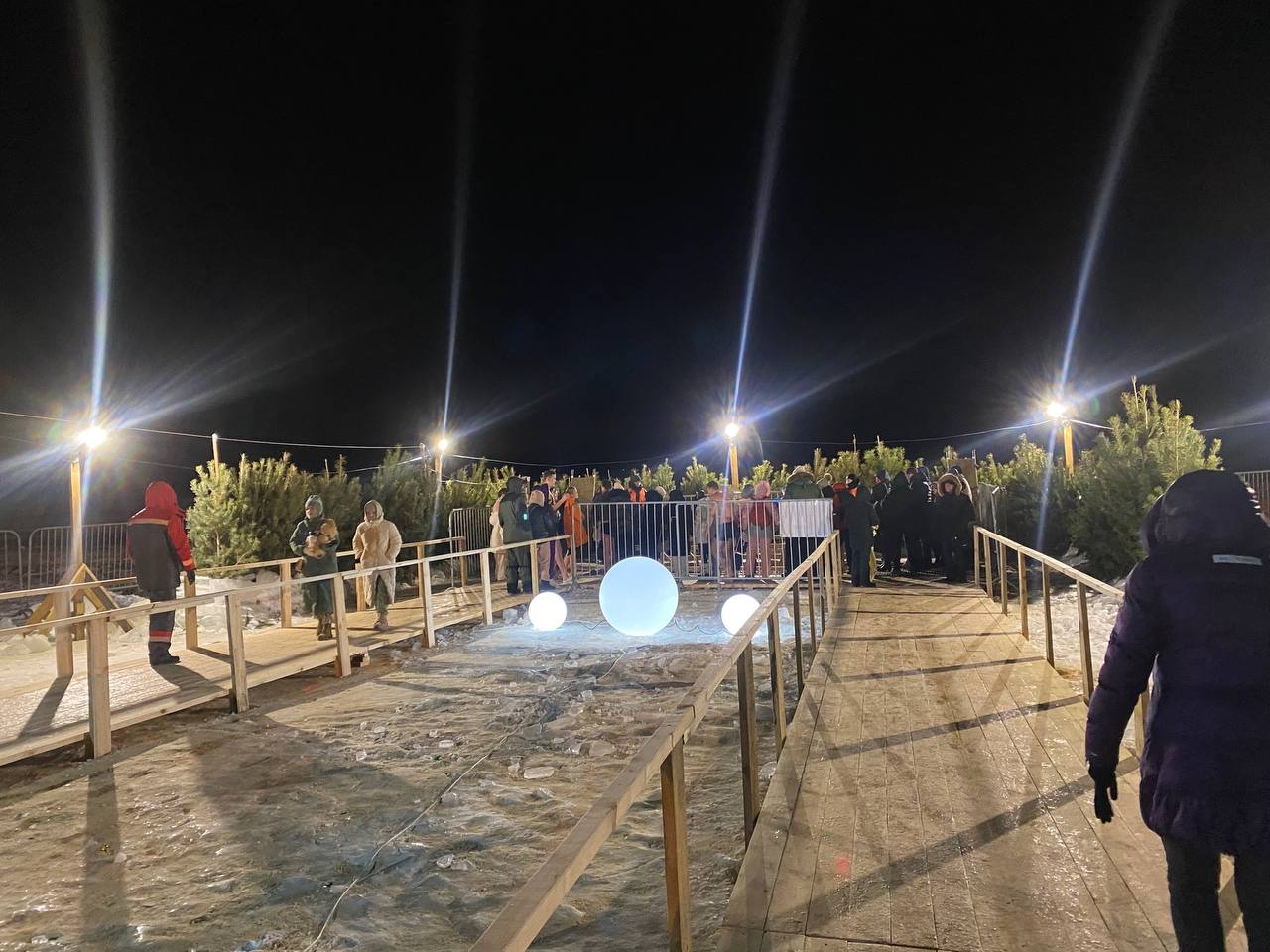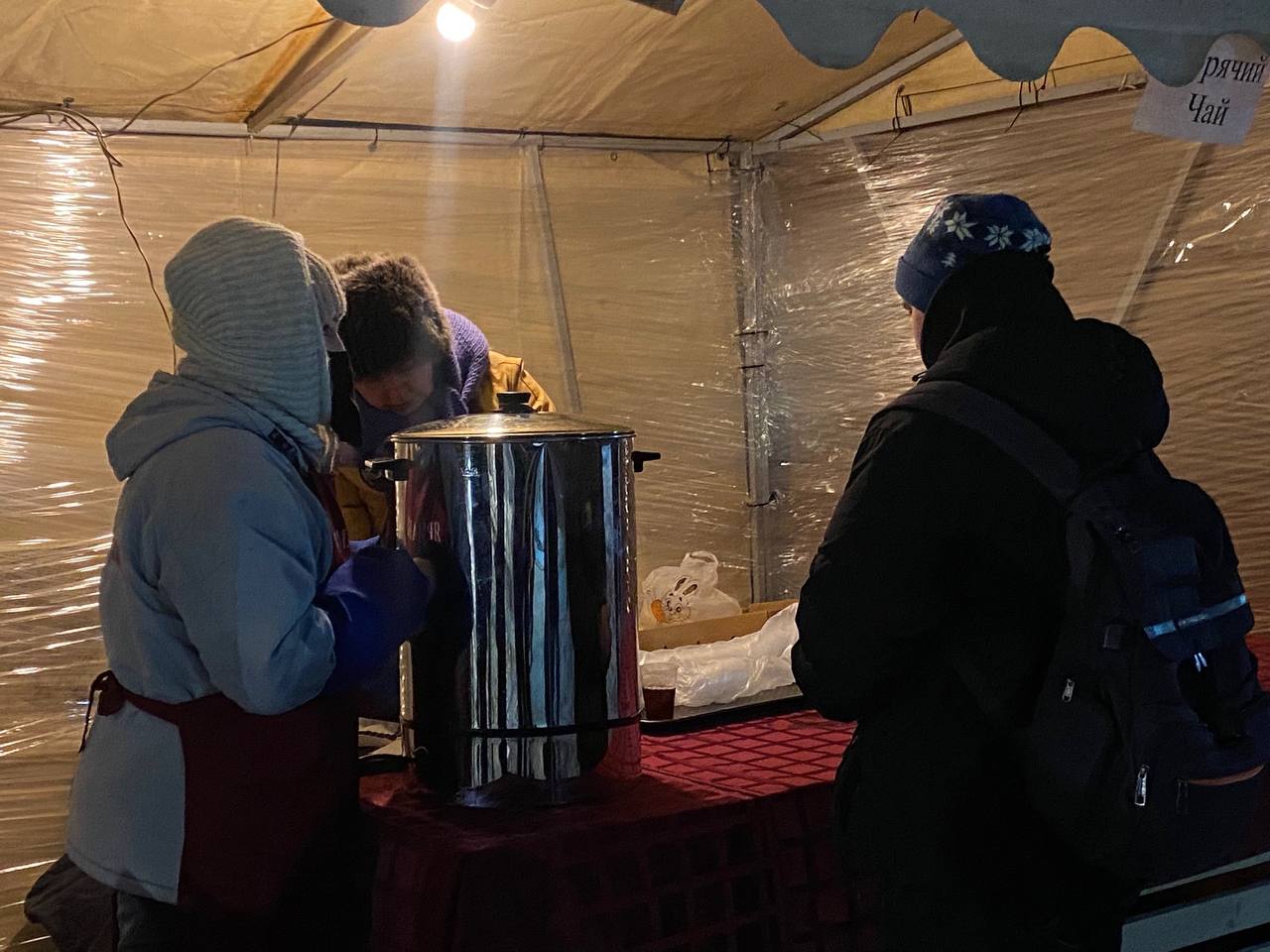Около иордани возвели теплые палатки для переодевания, есть и пункт с бесплатным горячим чаем и бутербродами.