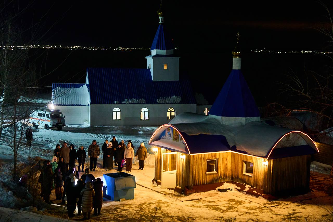 В ночь на Крещение Господне жители Сызрани окунались в купели на святом источнике иконы Феодоровской Божией Матери в посёлке Новокашпирском.