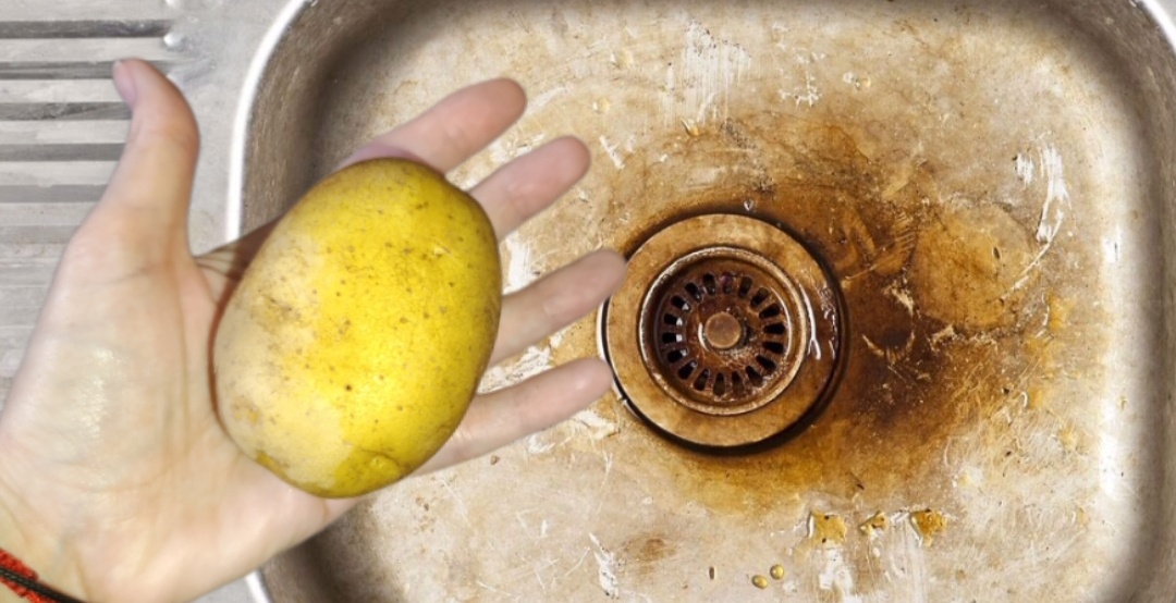 - Соль и картофель: Разрежьте картофелину пополам, посыпьте одну половину солью и потрите ею ржавое пятно. Крахмал в картофеле помогает размягчить ржавчину.