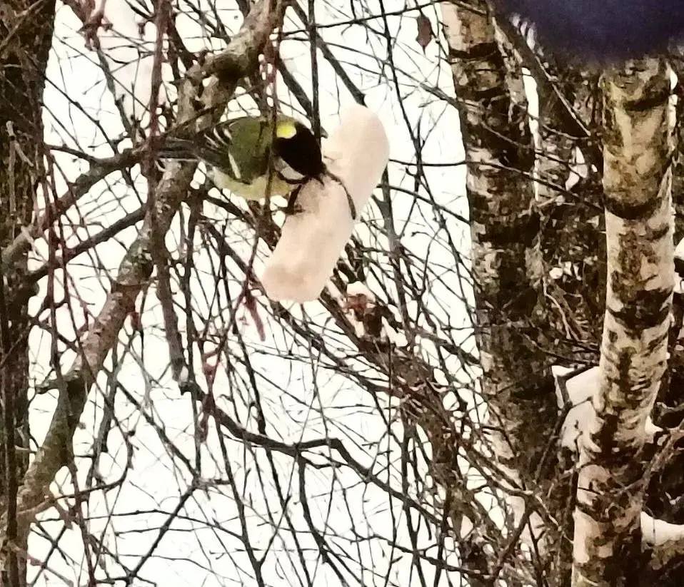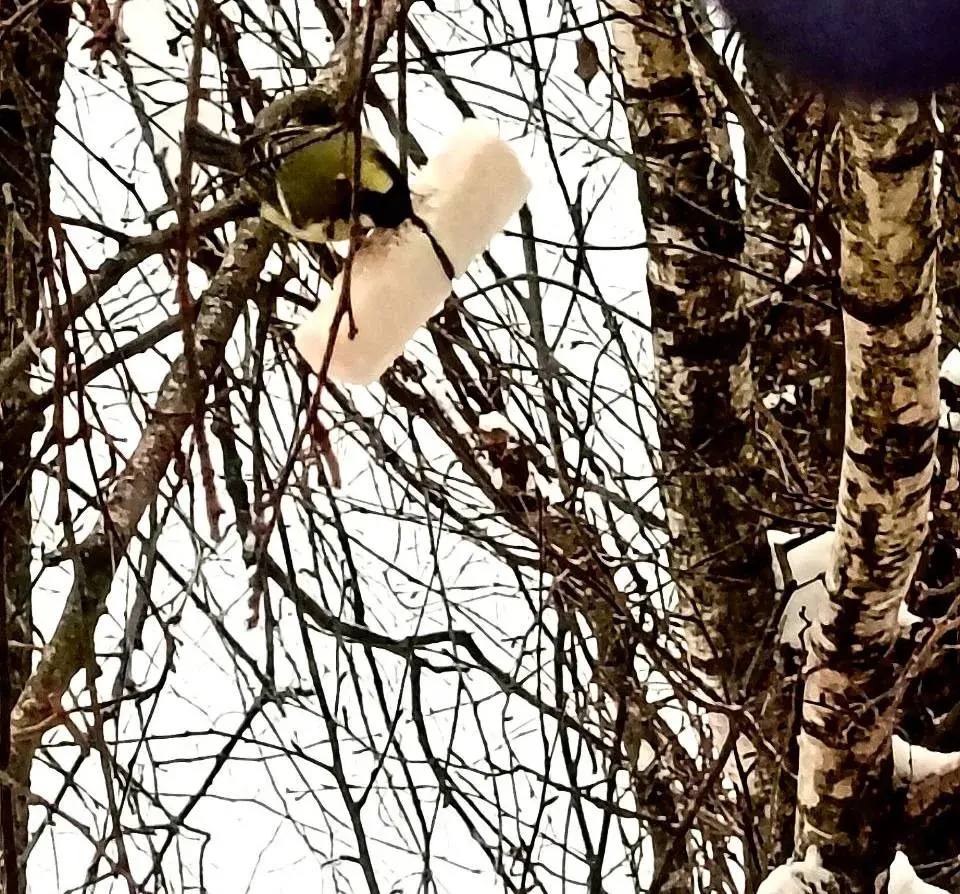 Друг нашего телеканала , московский художник Михаил Веременко, создатель знаменитого символа Молодежного фестиваля «Катюша» положил кусочек сала синичке.