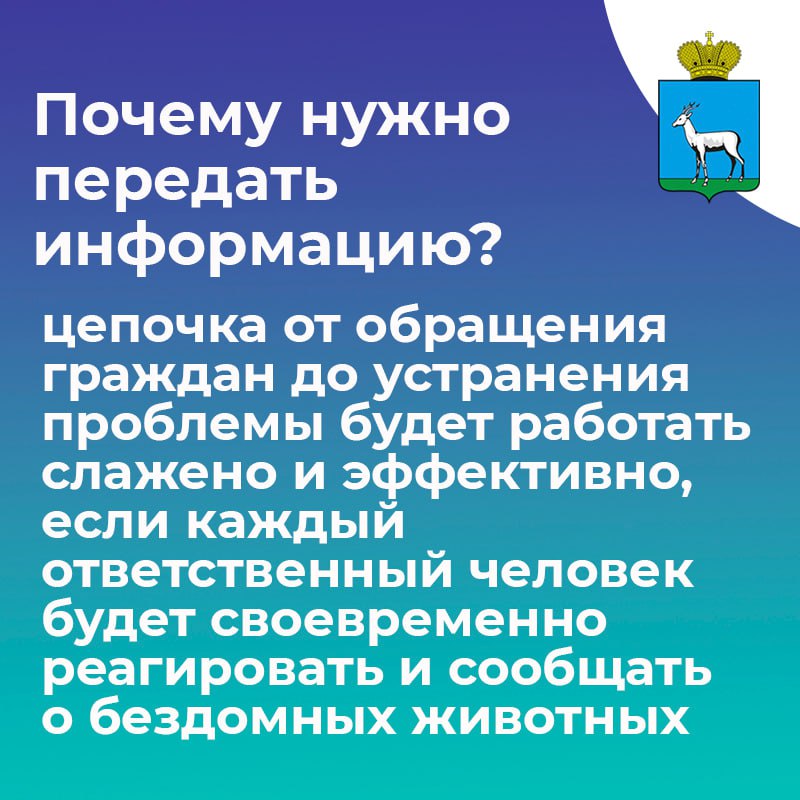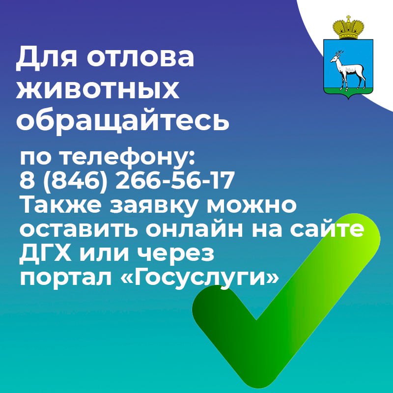 Напоминаем, для отлова животных в Самаре обращайтесь в Департамент городского хозяйства и экологии по телефону 8 (846) 266-56-17 или на «горячую линию» ООО «Добрые люди» 8 (987) 907-04-84, также заявку можно оставить онлайн на сайте департамента или через портал «Госуслуги».