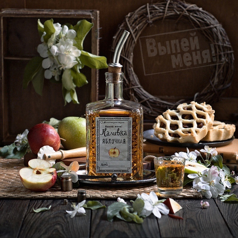 Готовую наливку фильтруют через марлю, тщательно отжимая яблоки. Затем переносят в чистую бутылку и добавляют яблочный сок (желательно осветленный без мякоти).