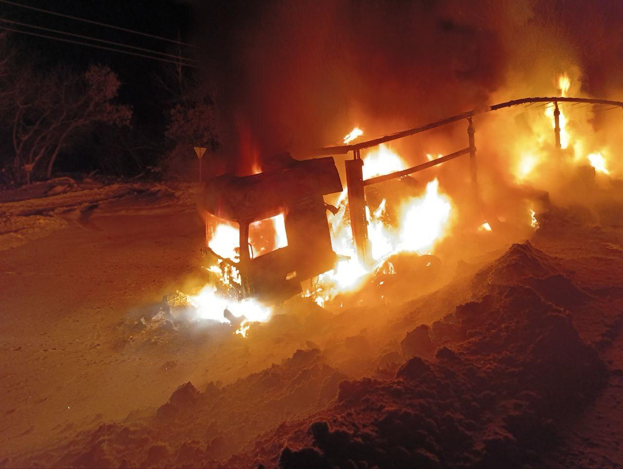 Грузовик сгорел дотла после ДТП в Самарской области