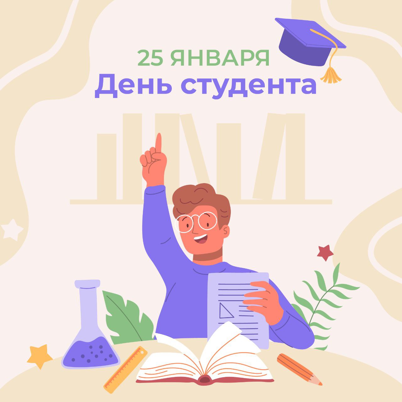 Сегодня поздравляем молодёжь с Днем студента! Пусть каждый день учебы приносит радость открытий, а лекции и семинары будут не только полезными, но и вдохновляющими!