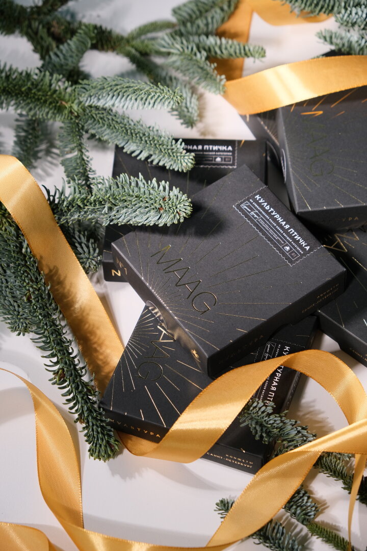 Эта коллаборация MAAG и фабрики «Культура» отлично иллюстрирует, как успешно могут пересекаться различные сферы — гастрономия и мода. Вдохновение для создания коробки черпали от общих эстетических ценностей, что делает продукт не только вкусным, но и визуально привлекательным. Не упустите возможность порадовать себя или своих близких таким уникальным подарком в новогоднюю ночь!