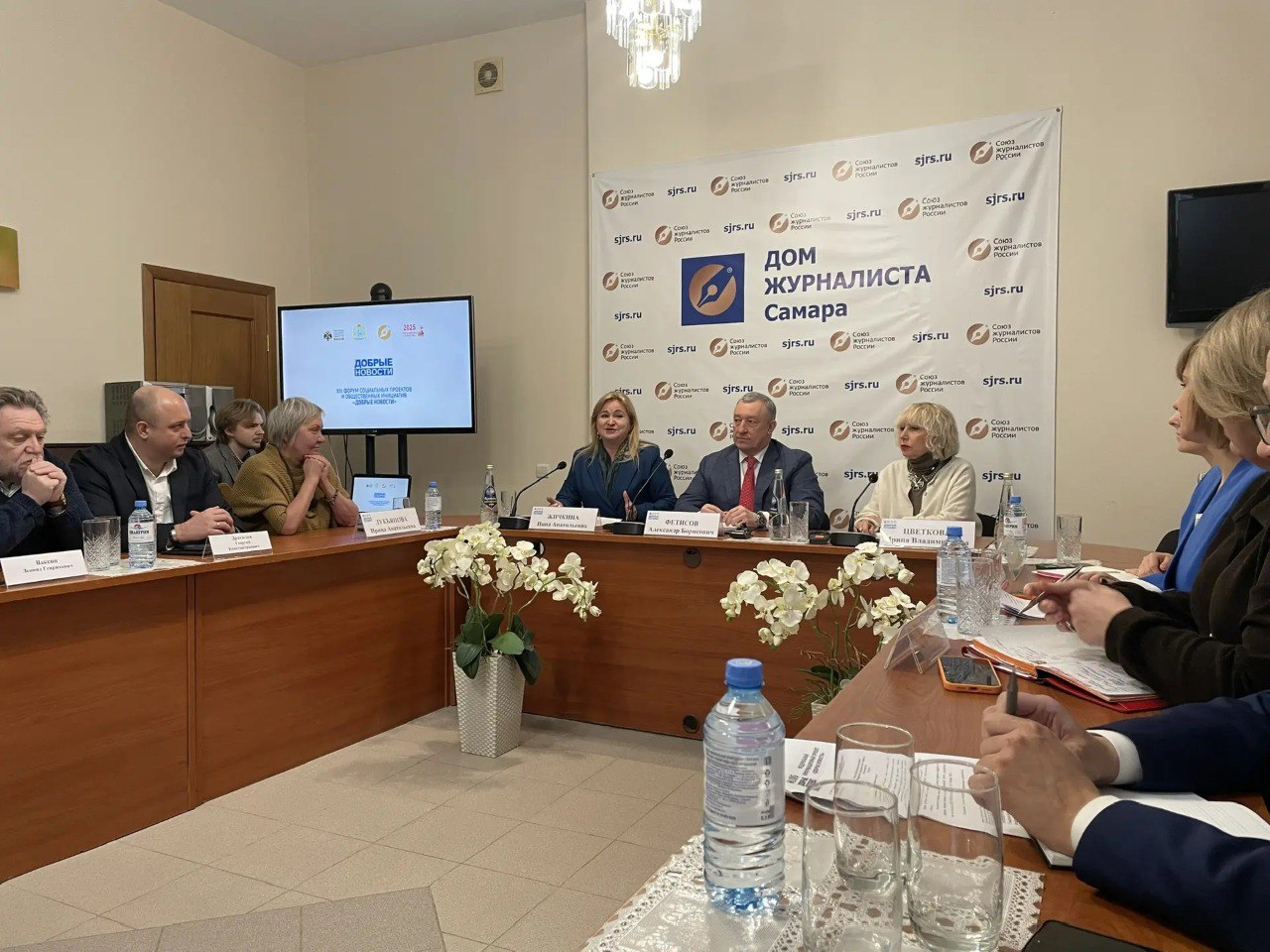Основными спикерами выступили врио заместителя губернатора Самарской области, председатель регионального отделения Российского военно-исторического общества, председатель оргкомитета проекта Добрые новости Александр Фетисов, председатель Самарского областного отделения Союза журналистов России Ирина Цветкова и координатор проекта Добрые новости, исполнительный директор регионального отделения Российского военно-исторического общества Инна Жичкина.
