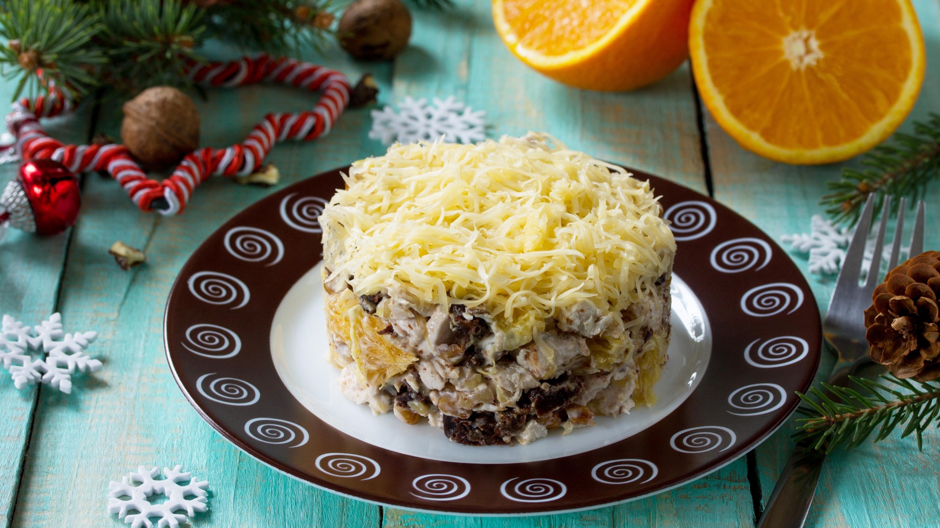В этом салате прекрасно все — от необычно подобранных ингредиентов до разных оттенков вкуса. Пряность чернослива и приятная кислинка маринованных огурчиков удачно дополняют друг друга.