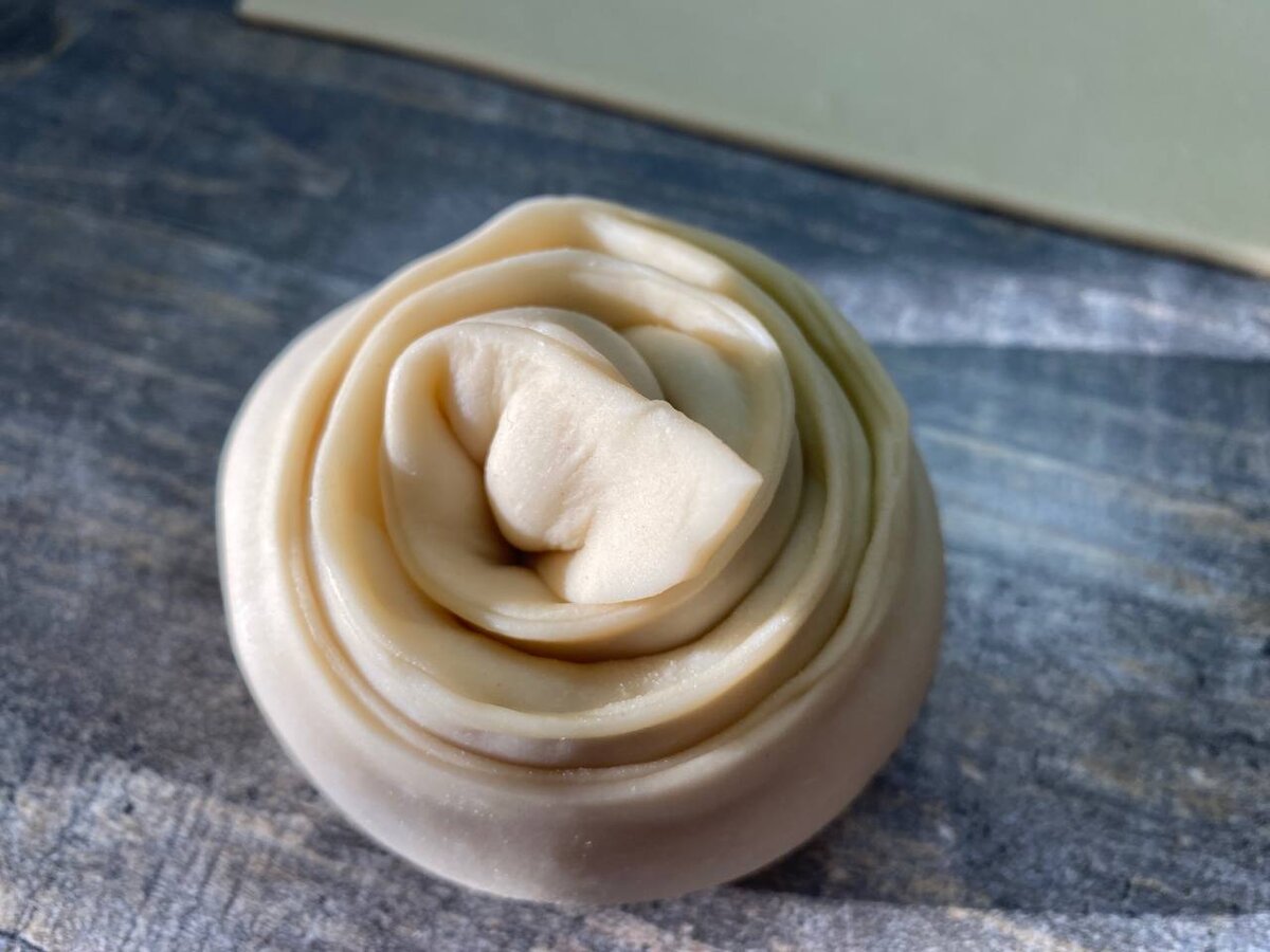 Теперь необходимо плотно закрыть края теста, чтобы начинка не вывалилась во время варки. Сверните тесто в рулетик, придавая форму розочки. Убедитесь, что края хорошо запечатаны, чтобы пельмени не распались во время готовки.