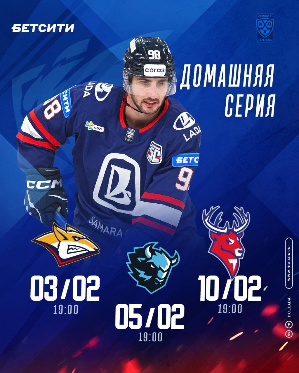 Домашняя серия Лады стартует уже во вторник. 3 февраля в гости пожалует магнитогорский Металлург, 5 февраля "Лада" сыграет с минским Динамо, а 10 февраля завершится длинная 6-матчевая серия с Торпедо.