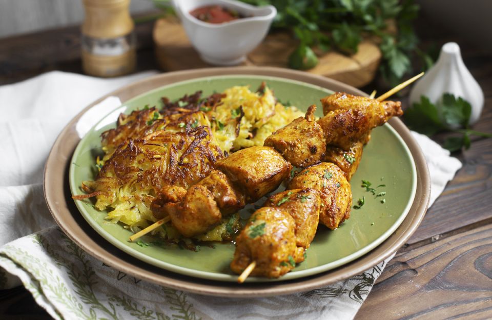 Аромат печёного картофеля и сочных шашлыков мгновенно переносит в атмосферу дачи. Это блюдо не только просто готовится, но и создаёт уютные воспоминания о летних вечерах на свежем воздухе. Картофельные оладьи получаются хрустящими и идеальными в сочетании с куриными шашлычками, которые можно легко приготовить на сковороде-гриль. Не переживайте, если такой сковороды нет — существуют альтернативные способы, чтобы добиться нежного аромата дыма.