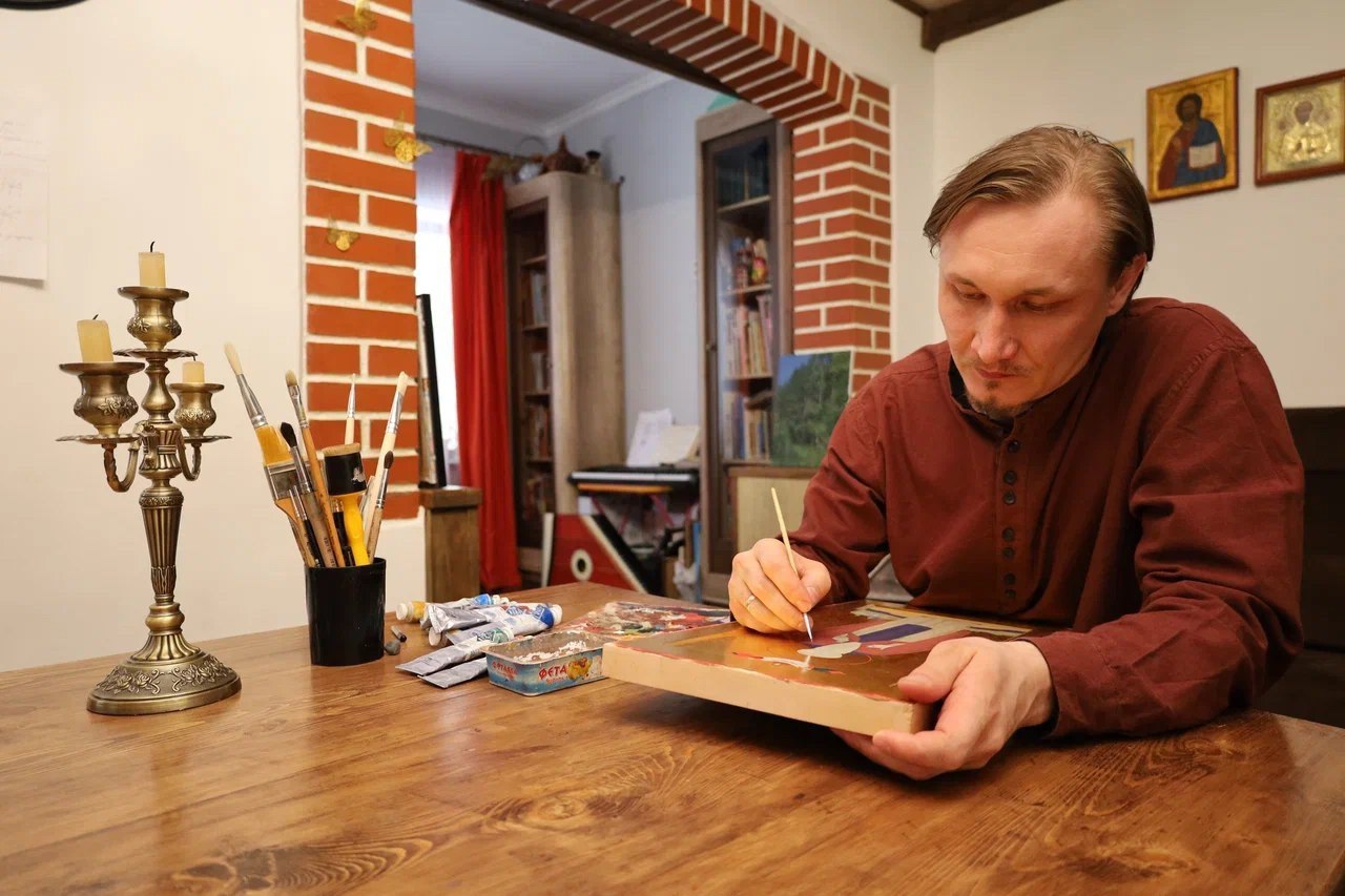 Максим Родионов – художник, иконописец, музыкант, учитель и человек с золотыми руками. Ещё он замечательный папа трех дочерей, младшей из которых всего 2,5 месяца.