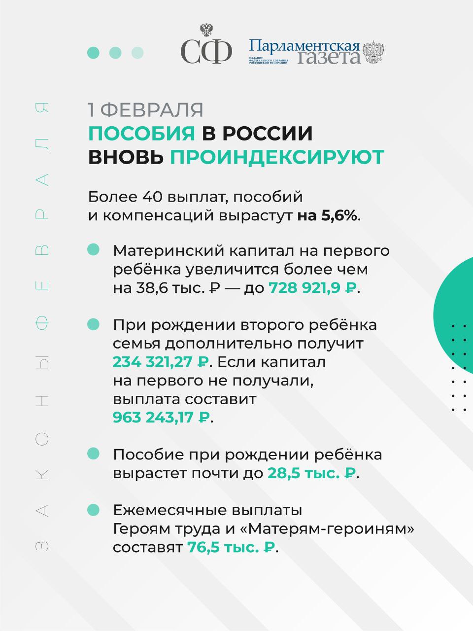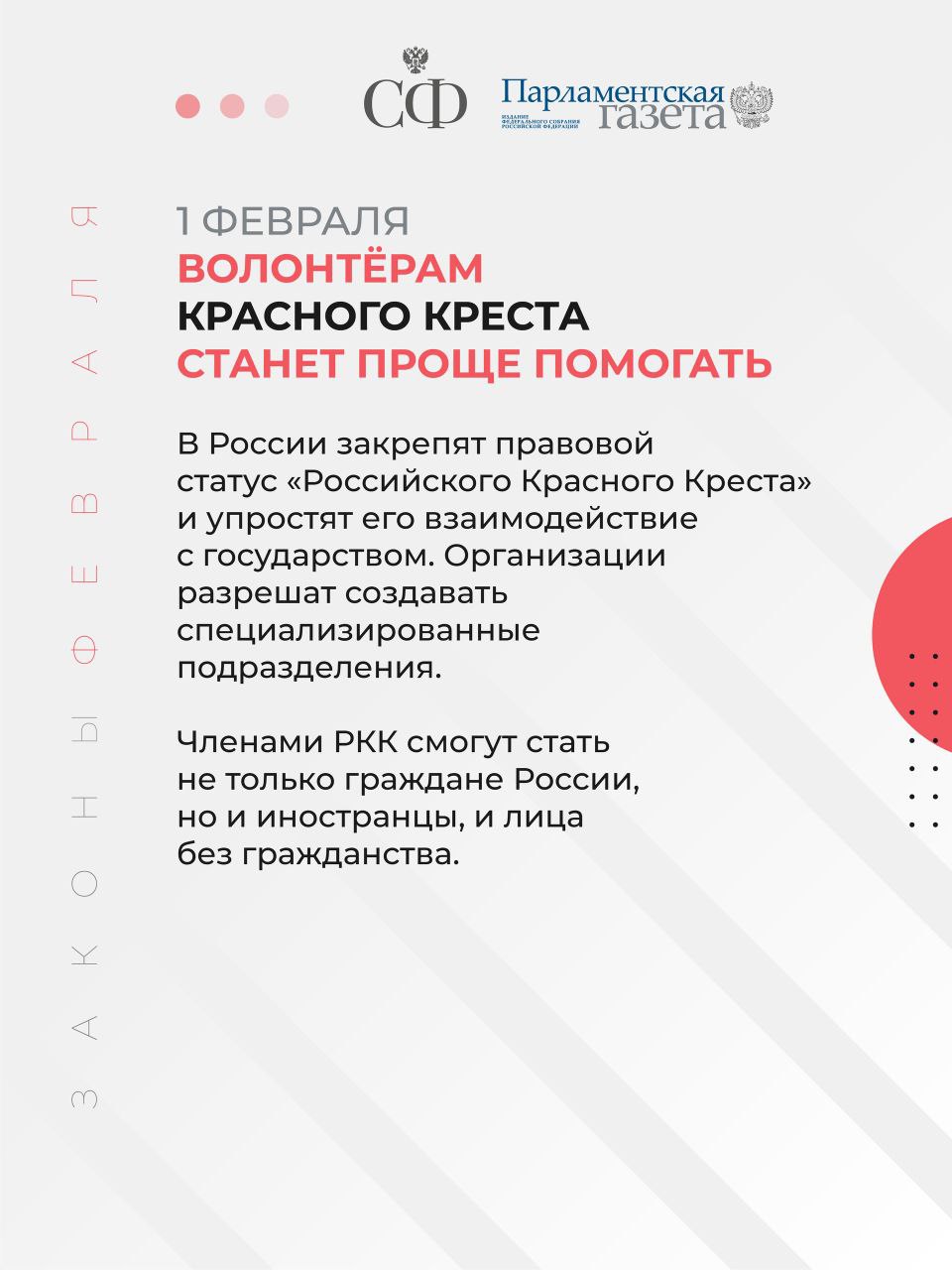Об этих и других законах, вступающих в силу в феврале, читайте в карточках Совета Федерации