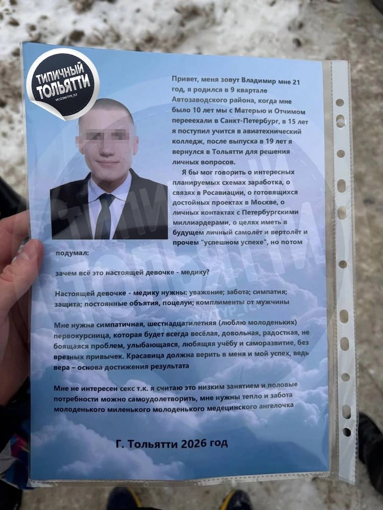 «Ищу медицинского ангелочка»: возле колледжа в Тольятти странный мужчина раздает свои анкеты для знакомств