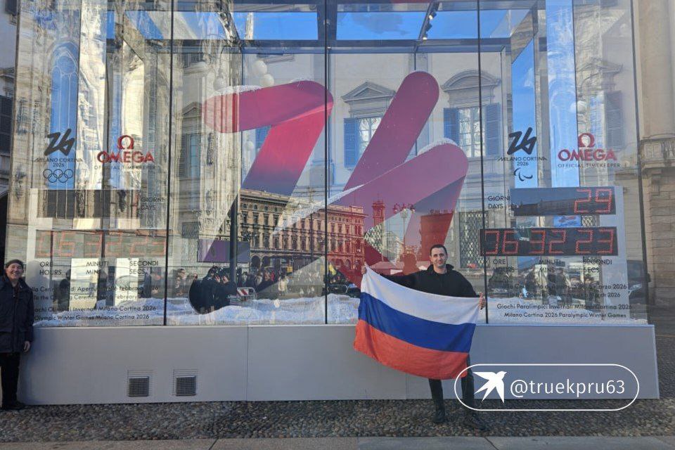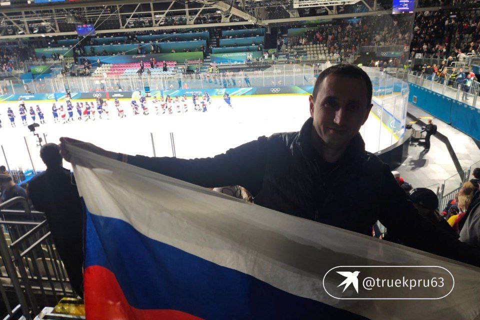 Самарец пронес флаг России на хоккейный матч Олимпиады в Италии!