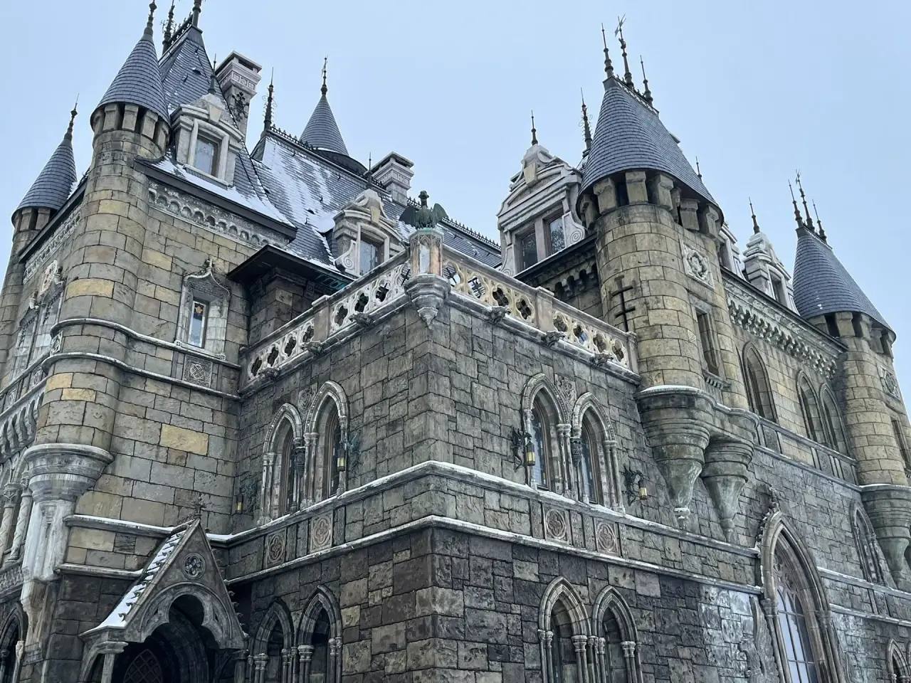 Величественное сооружение в неоготическом стиле, каменные стены, «состаренные» мастерами до совершенства, и статуи мифических существ, припорошённые снегом. Всё это - замок Гарибальди в селе Хрящёвка под Тольятти, который зимой превращается в настоящую сказку.