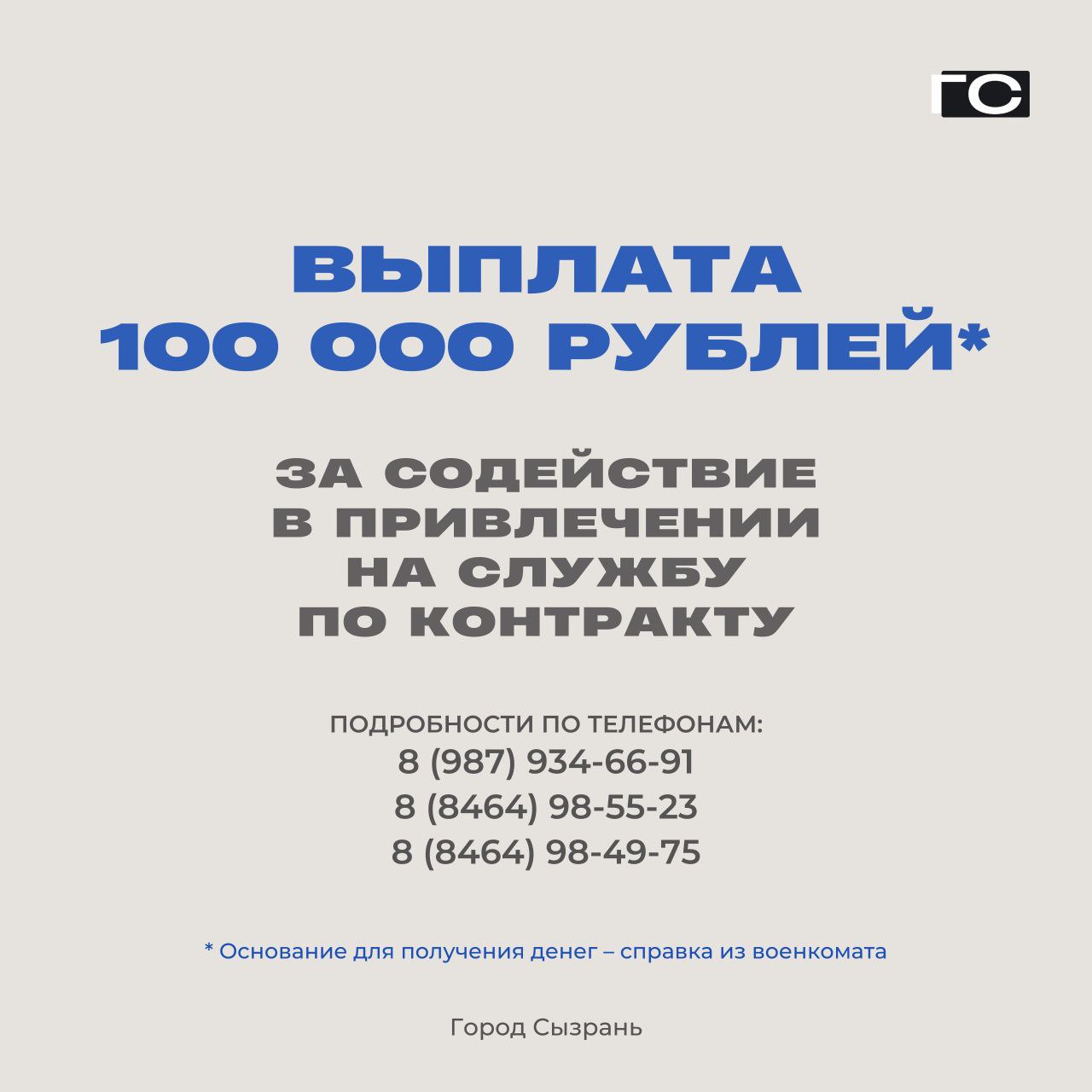 В Самарской области жители смогут получить 100 тыс. рублей за содействие в привлечении на службу по контракту