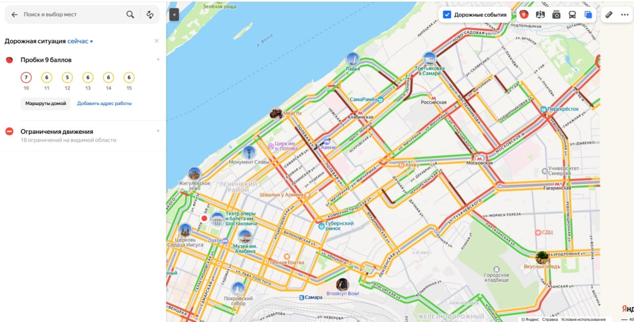 Тем временем пробки в Самаре достигли 9 баллов. В основном, транспортные заторы образуются на главных дорожных артериях города.
