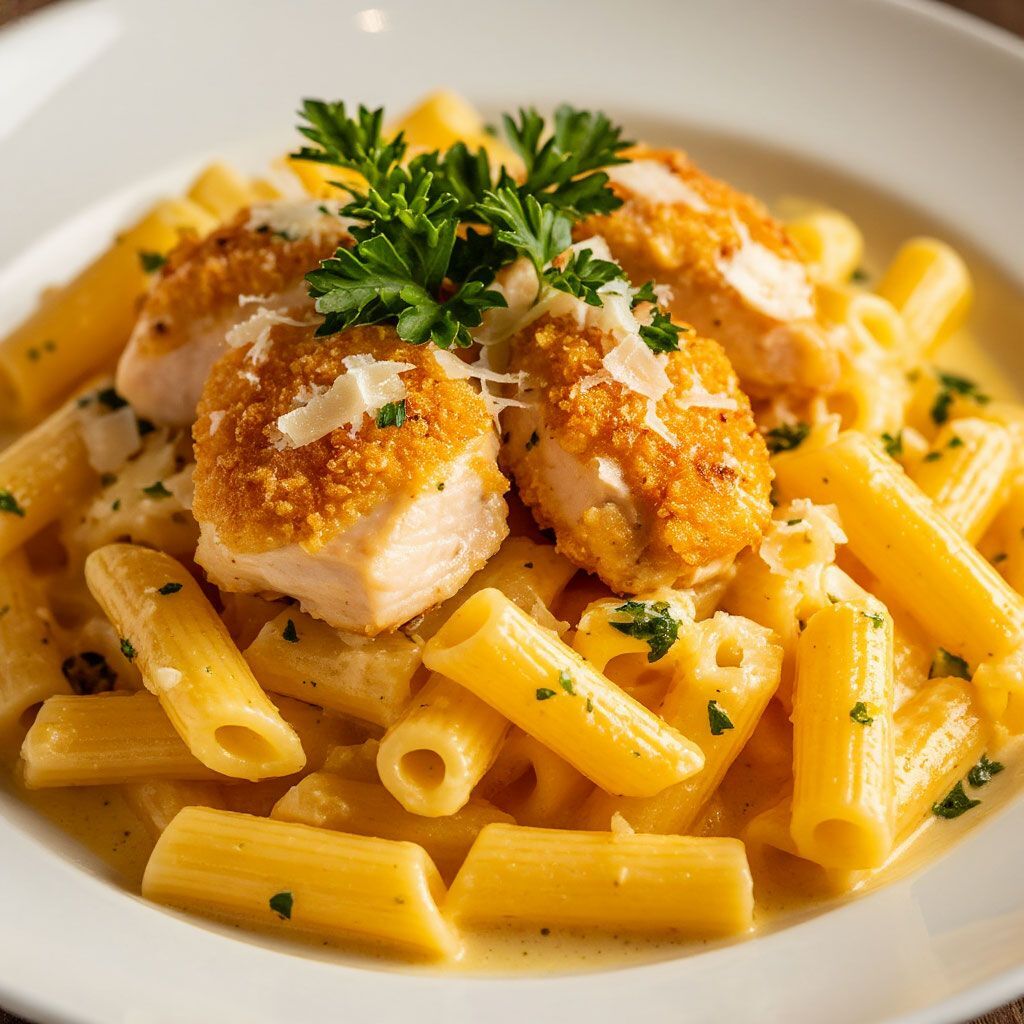Готовую пасту смешиваю с соусом, добавляю кусочки курицы и украшаю свежей зеленью, пишет PopCornNews.