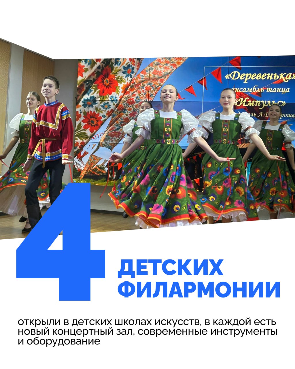 Благодаря программе в регионе действуют новые меры поддержки юных талантов и специалистов отрасли, открыли мини-кластеры, арт-парки, детские филармонии, капитально ремонтируют дома культуры.