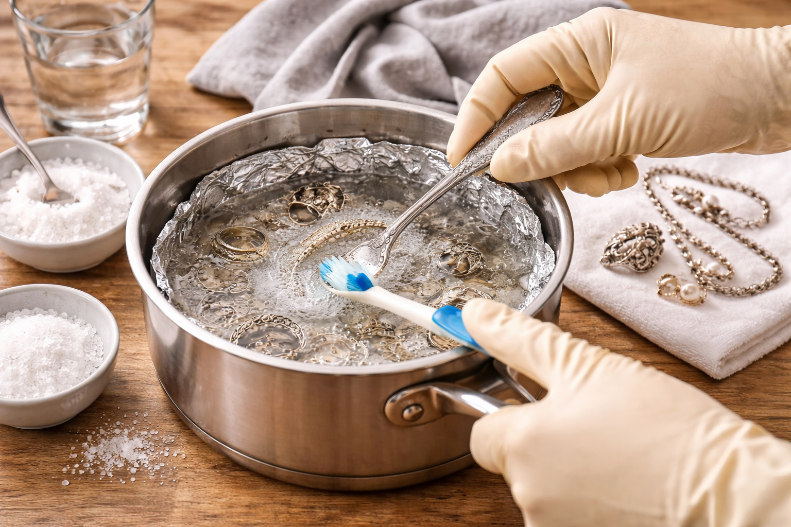 Беру добавку с кухни, разбавляю водой и натираю серебро: через 2 минуты почерневшая цепь сияет, как после ювелира