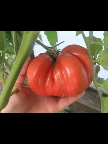 Куст вырастает высоким (в теплице до 1,82 м) и требует регулярного формирования и надежной опоры. Плоды сердцевидной формы с плотной, сладкой мякотью и малым количеством семян подходят и для свежего употребления, и для переработки соков, соусов, лечо. При правильном уходе урожай формируется не за счет множества мелких томатов, а за счет нескольких очень крупных.