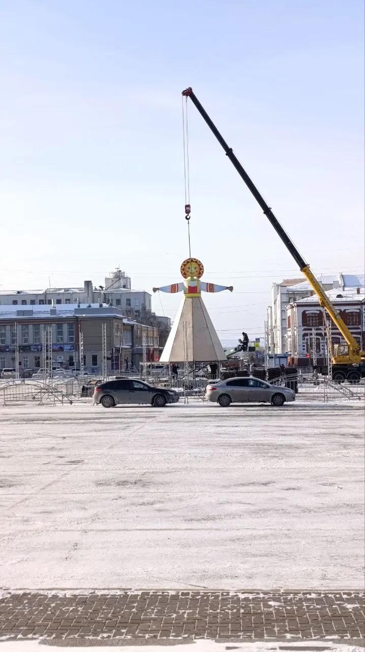Фото: фигуру Маслены устанавливают на площади Куйбышева в Самаре 12 февраля