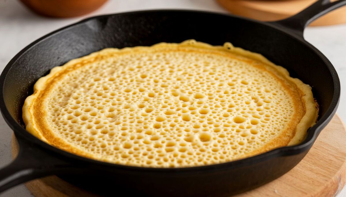 Жарю на среднем огне до момента, когда поверхность станет матовой и покроется множеством дырочек, а края начнут подрумяниваться. Затем аккуратно поддеваю и переворачиваю. Вторую сторону жарю меньше.