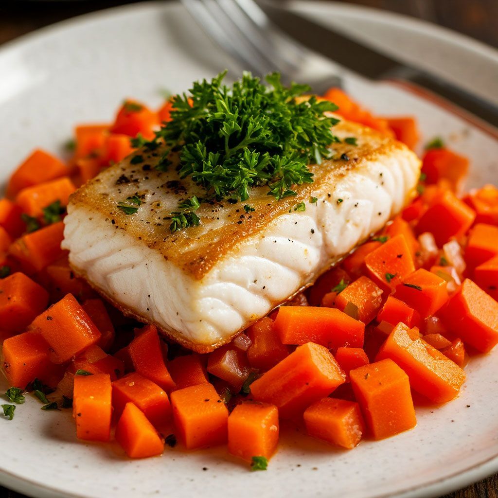 Рыбу кладу крупно нарезанной, чтобы каждый кусочек оставался сочным. В конце немного присаливаю и добавляю чёрный перец — этого достаточно, чтобы подчеркнуть вкус. Блюдо готово к подаче как в горячем, так и в холодном виде.